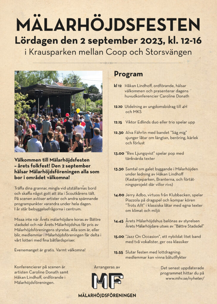 VÄLKOMMEN TILL MÄLARHÖJDSFESTEN