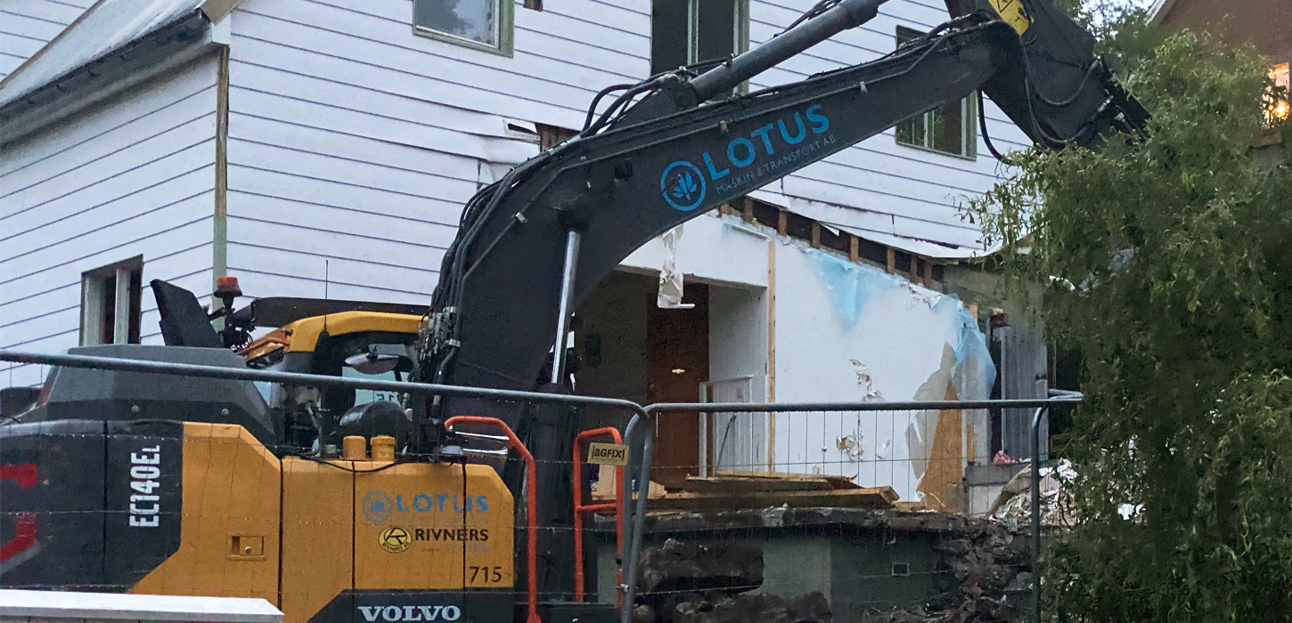 Röd markering = rivning av enfamiljshus, rivningslov och bygglov för flerfamiljshus
