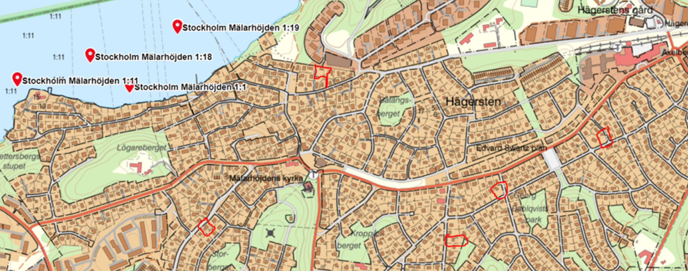 Byggbolag köper upp fastigheter i Mälarhöjden och söker rivningslov av befintligt enfamiljshus och nytt bygglov för ett eller två flerfamiljshus. Enligt detaljplanen får man bebygga 20% av tomtarean, byggnaden får ha en höjd av högst 7,5 meter, ha högst två våningar och källare samt vind inredd till högst 1/3 del.
