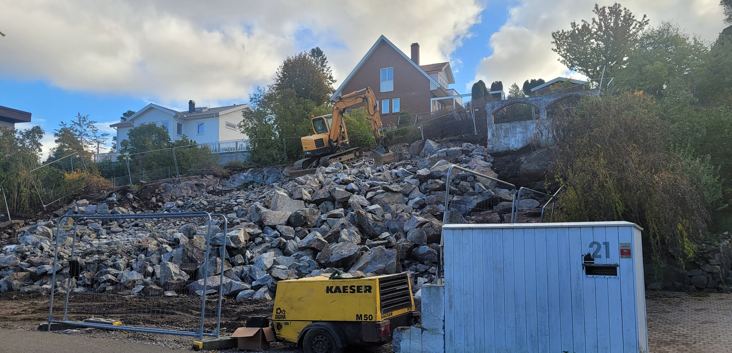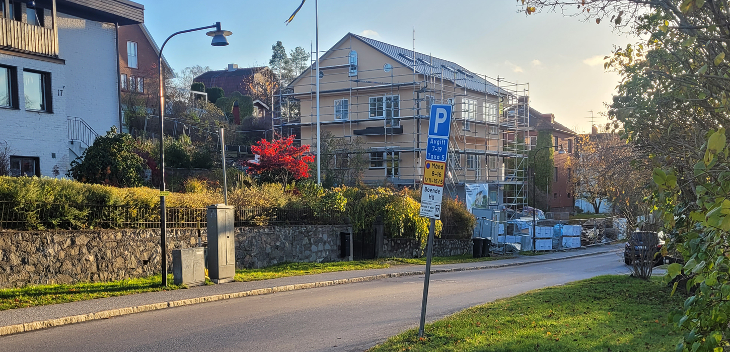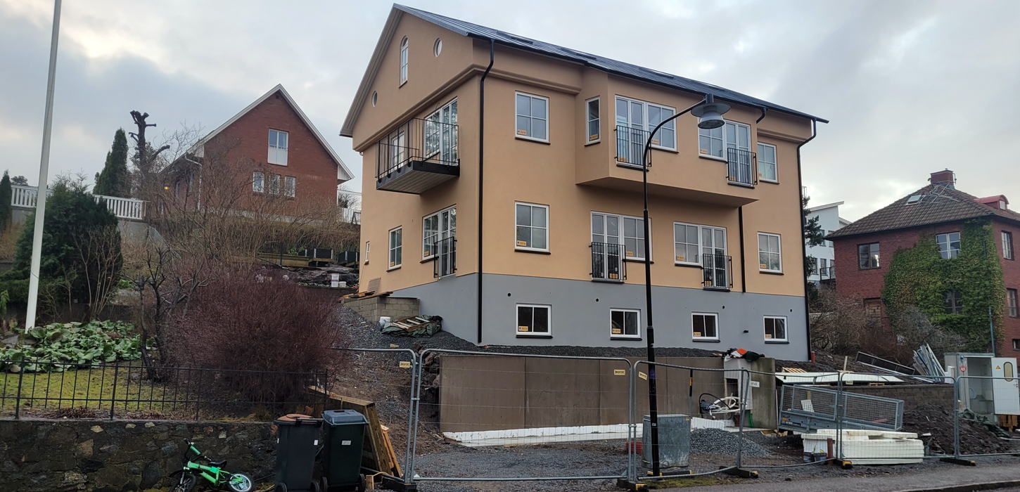 Rivningslov av enbostadshus och nytt bygglov samt startbesked är beviljat för ett flerbostadshus med 8 lägenheter. Mycket omfattande markarbeten har utförts, bl a sprängdes ett befintligt berg bort, och grund/källare murades innan bygglovet vunnit laga kraft. Huset är uppfört och div byggnadsarbete pågår. Enligt annons vid byggarbetsplatsen är lägenheterna ute till försäljning.