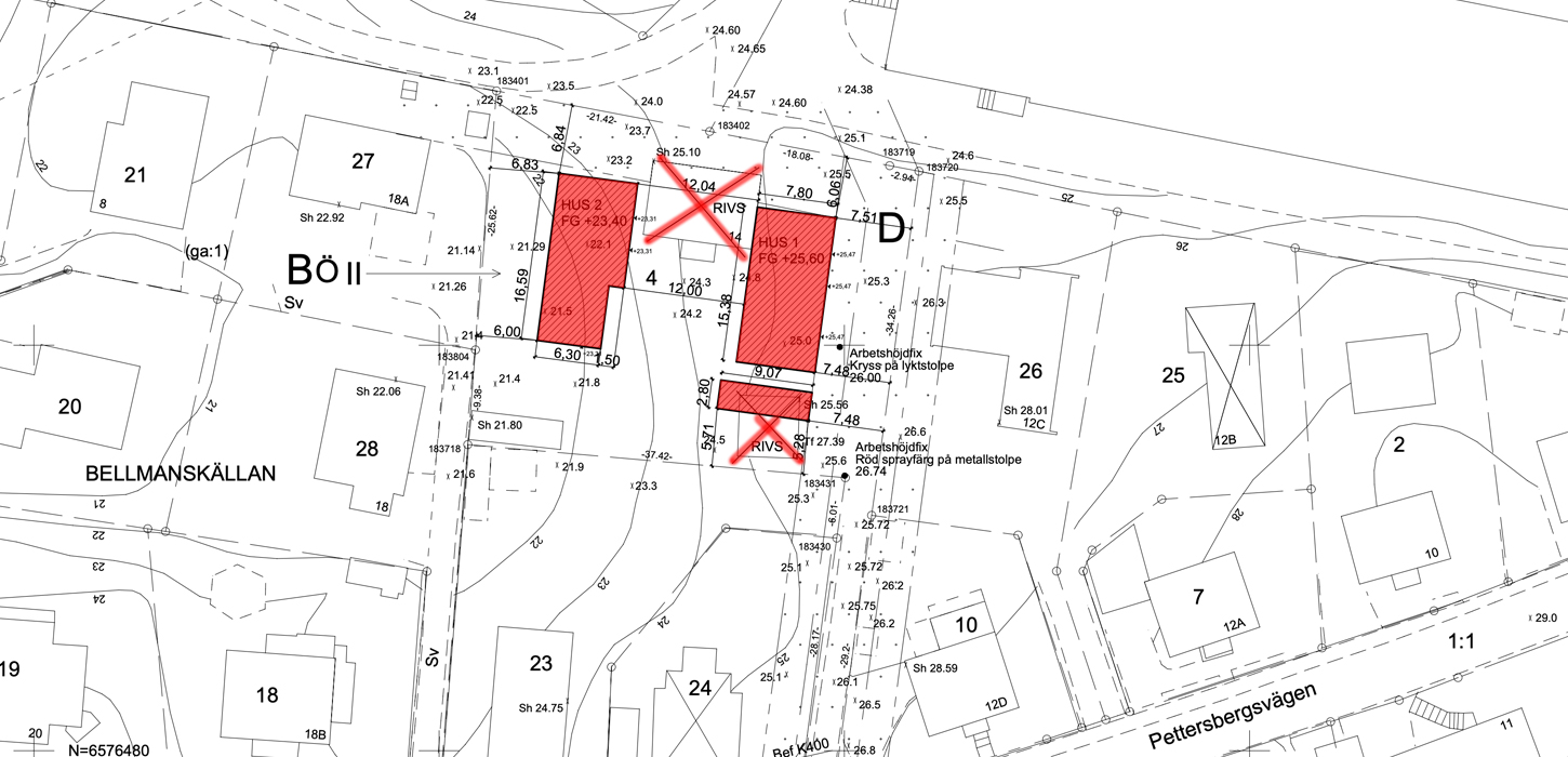 Rivningslov av enbostadshus med komplementbyggnad samt nytt bygglov för två flerbostadshus med vardera 6 lägenhet (totalt 12 lägenheter) och komplementbyggnader har beviljats av Stadsbyggnadsnämnden.