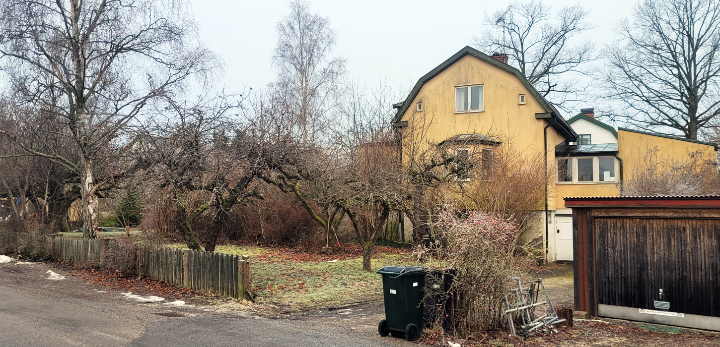 Rivningslov av enbostadshus och bygglov av flerbostadshus med 8 lägenheter har beviljats av Stadsbyggnadsnämnden (mål 2021-11942). Efter överklagan av grannar avslog Länsstyrelsen bygglovet. Mark-och Miljödomstolen gjorde en annan bedömning och återförvisade ärendet till Stadsbyggnadsnämnden för omarbetning.
